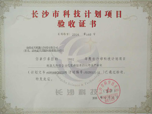 長沙市科技計劃項(xiàng)目驗(yàn)收證書